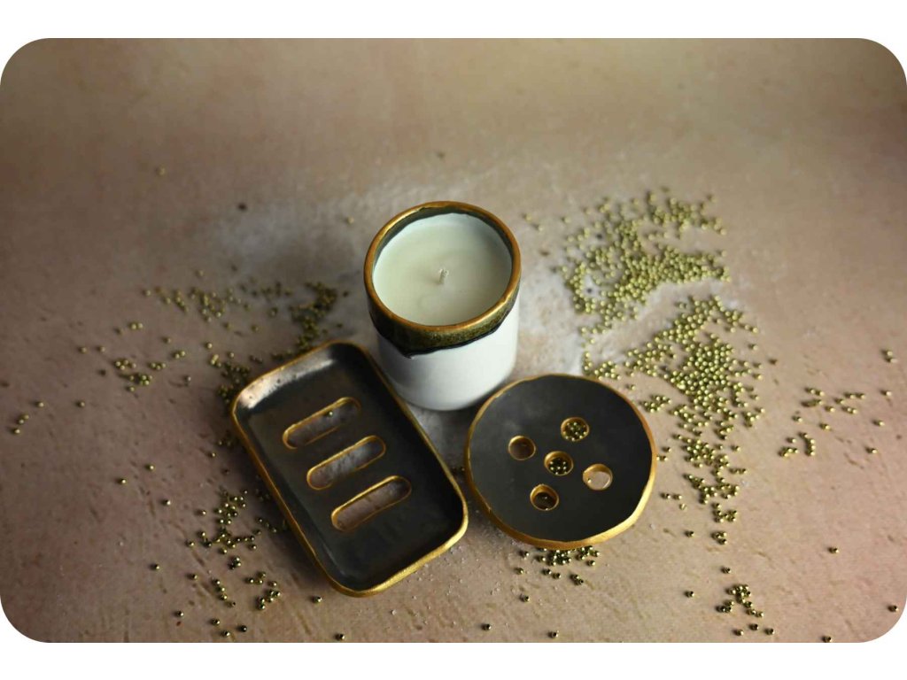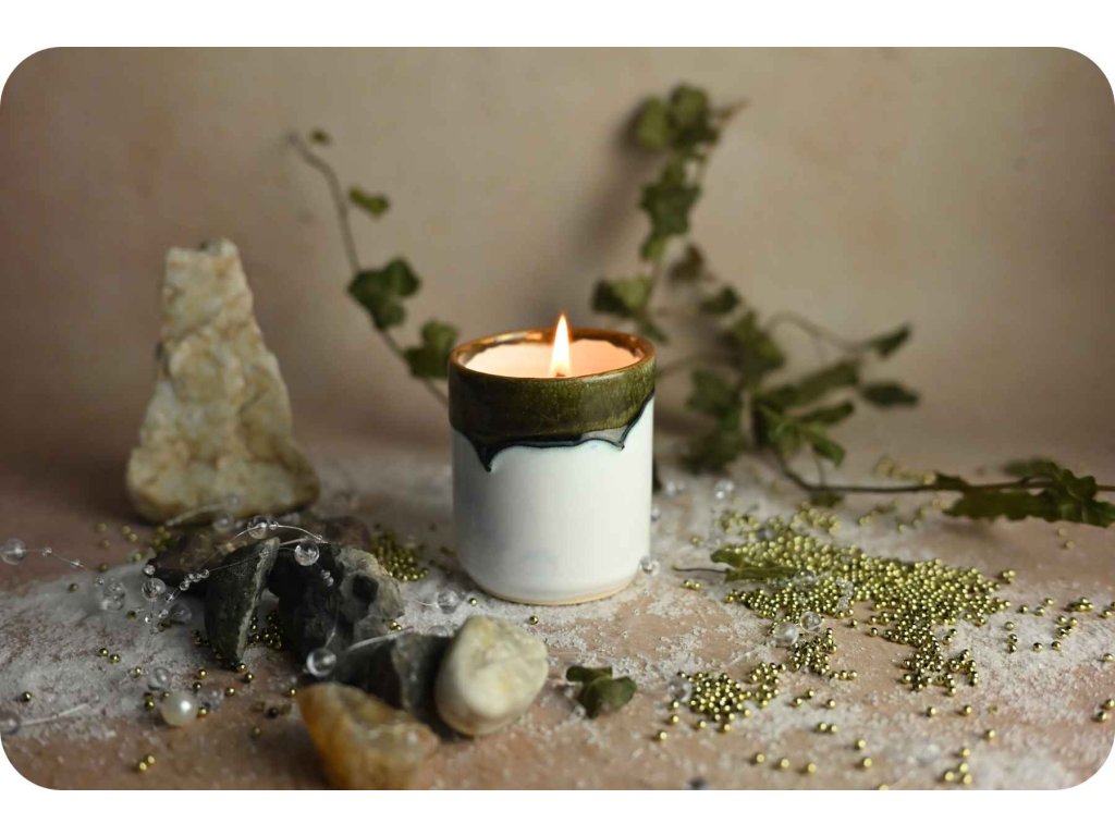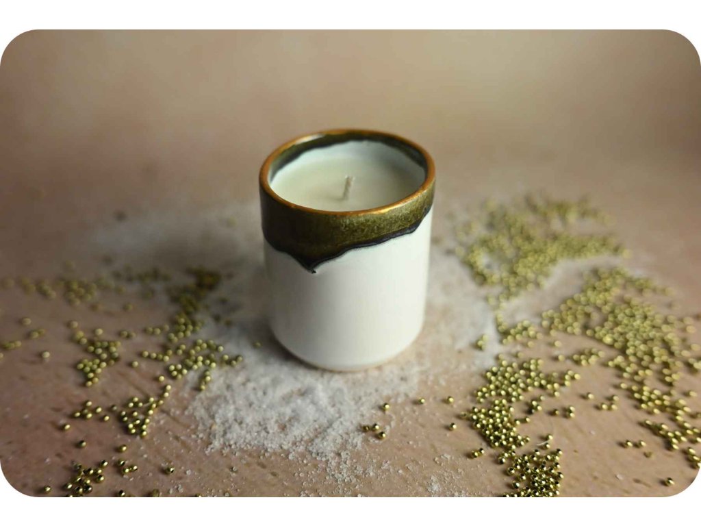 Keramický kalíšek: průměr 7 cm, výška 8 cm (váha 190 g bez vosku, 310 g s voskem)