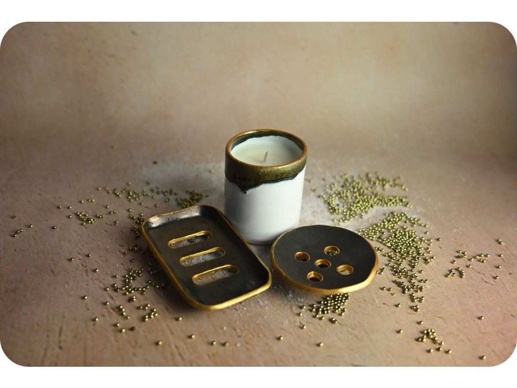Glazováno, lehce omyvatelný povrch, u mýdlenky otvory pro odtok vody.