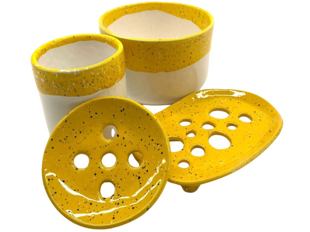 Objevte krásu ručně vyráběné designové keramické kolekce v odstínu žlutá, která vnese do vaší koupelny originalitu, eleganci a harmonii. Každý kousek je výsledkem poctivé ruční práce – keramiku s láskou tvoří lidé s hendikepem. Díky tomu získáte nejen praktický doplněk do koupelny, ale i originální výrobek s příběhem.