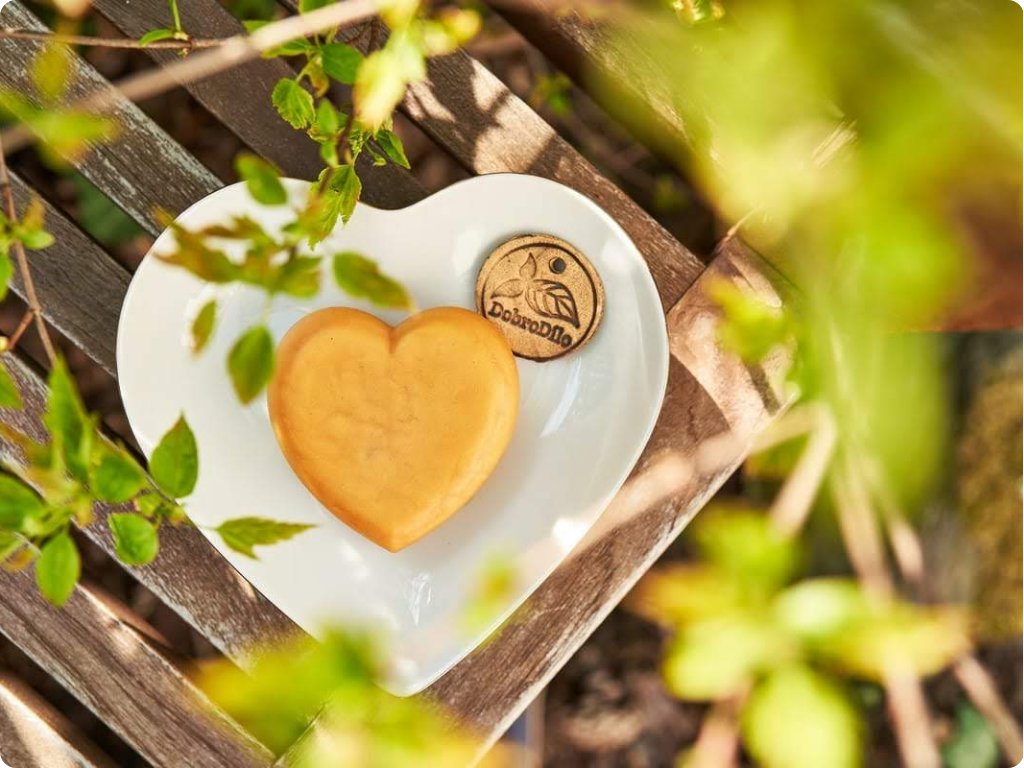 Vyrobeno jen a pouze z přírodních surovin i za použití mýdlových hmot s certifikátem COSMOS Organic a RSPO, bez sulfátů a syntetických pěnidel.