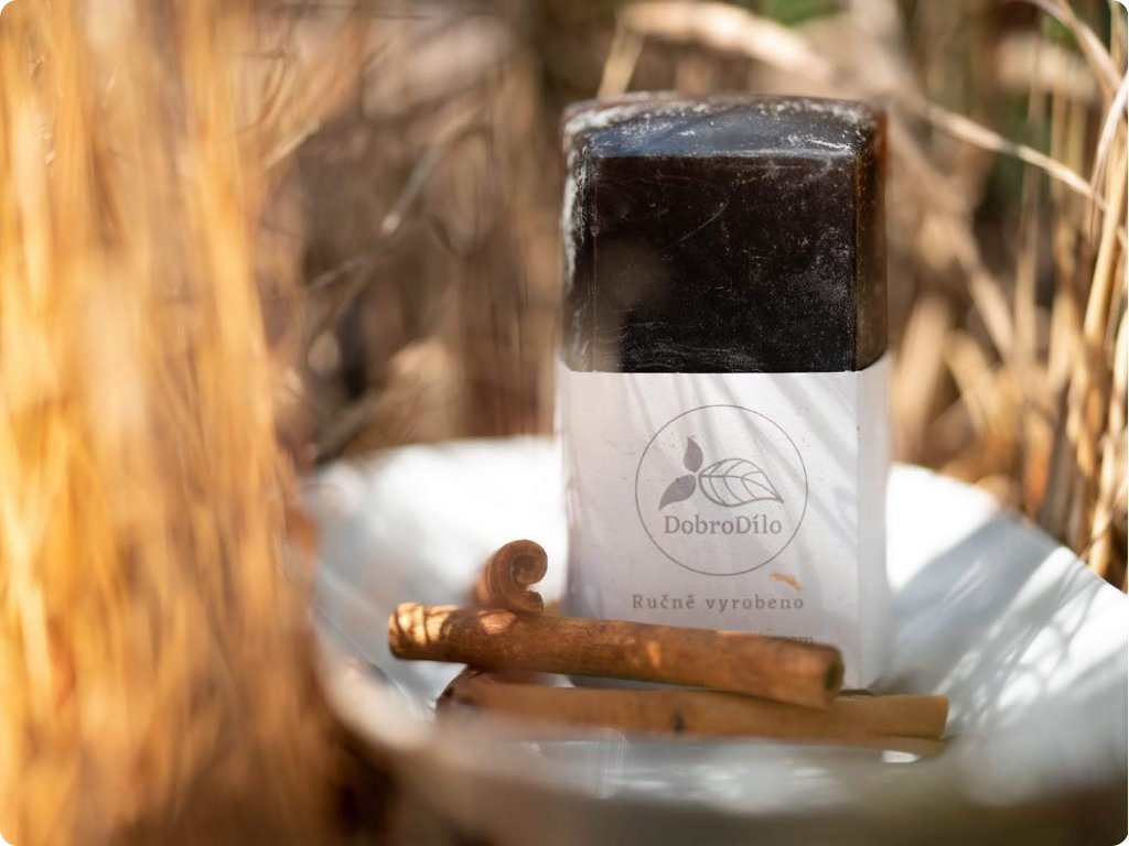 Přírodní ručně vyráběné mýdlo s přídavkem afrického černého mýdla s obsahem bambuckého másla a kokosového oleje je bohaté na přirozeně se vyskytující minerály a antioxidanty. Vynikající čistící vlastnosti mýdla jsou podpořeny i přírodním esenciálním olejem ze Skořice, který má antiseptické, čistící a regenerační účinky. Prohřívá a prokrvuje pokožku, pomáhá rychleji odbourat tukové tkanivo a je vhodný na prevenci a eliminaci celulitidy.