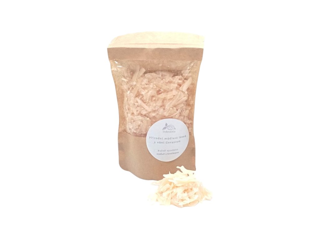 Přírodní mýdlová lázeň s vůní Gerania intenzivně hydratuje a regeneruje pokožku. Je ideálním pomocníkem k relaxaci po namáhavém dni.