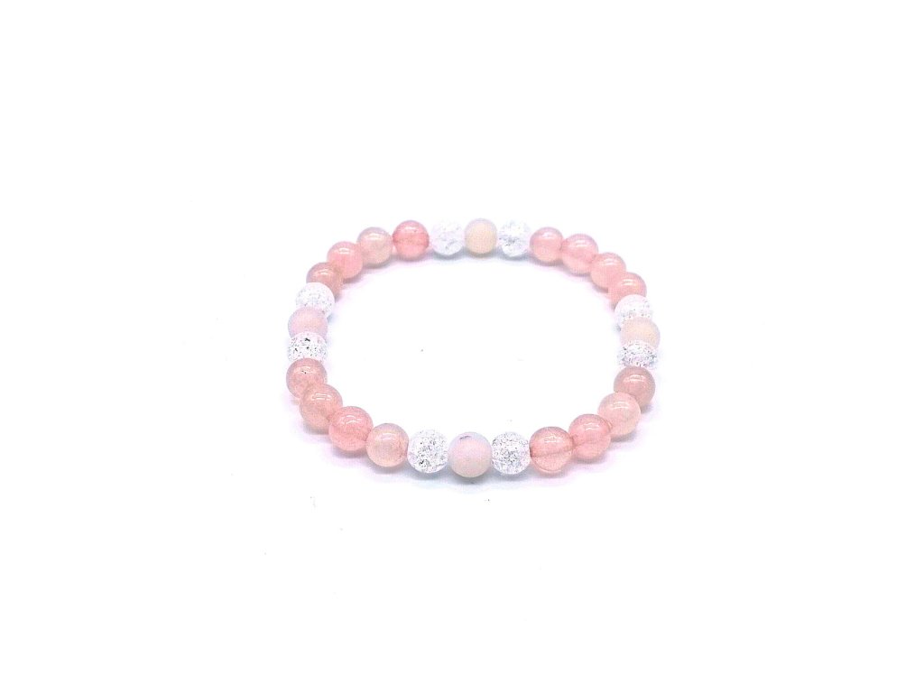 Náramek je vyroben z praskaného Křišťálu, Růženínu a Jadeitu.