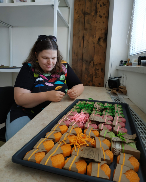 Dnes u nás pracuje 30 zaměstnanců, z toho 25 lidí s hendikepem. Máme dvě vlastní dílny – mýdlařskou, svíčkařskou a keramickou v Králově Dvoře – a kuchyň Foodies ve Zdicích.